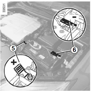 Assurez-vous qu'aucun contact n'existe entre les deux véhicules (risque de court-circuit lors de la liaison des pôles positifs) et que la batterie déchargée est bien branchée. Coupez le contact de votre véhicule.