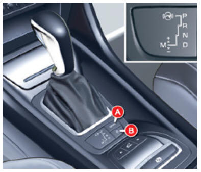 Le serrage/desserrage MANUEL du frein de stationnement est possible en permanence en tirant/poussant la palette de commande B et en appuyant sur la pédale de frein.