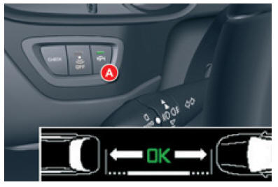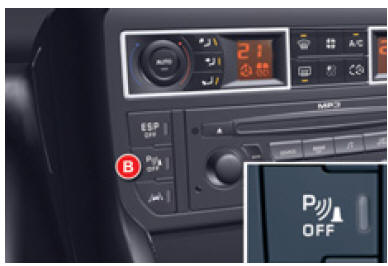 Vous pouvez activer/désactiver l’aide au stationnement par un appui sur la commande B. Si l’aide au stationnement est inactive, le témoin de la commande B est allumé.