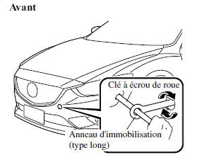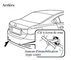 Si l'anneau d'immobilisation n'est pas correctement serré, il peut se desserrer ou se décrocher du parechocs lors d'immobilisation du véhicule. S'assurer que l'anneau d'immobilisation est fermement serré sur le pare-chocs.