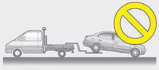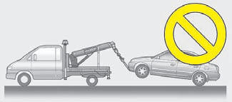Si vous faites remorquer le véhicule par un dépanneur commercial et que des chariots à roues ne sont pas utilisés, les roues avant du véhicule doivent toujours être soulevées, par les roues arrière.