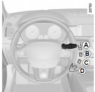 | Pour tous les véhicules, la position C est accessible contact mis et les positions B et D sont accessibles uniquement moteur tournant. |