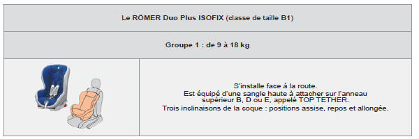 TABLEAU RÉCAPITULATIF POUR L’EMPLACEMENT DES SIÈGES ENFANTS ISOFIX