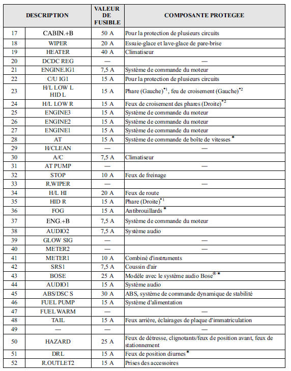 Toujours remplacer un fusible par un fusible Mazda authentique ou équivalent de même valeur nominale.