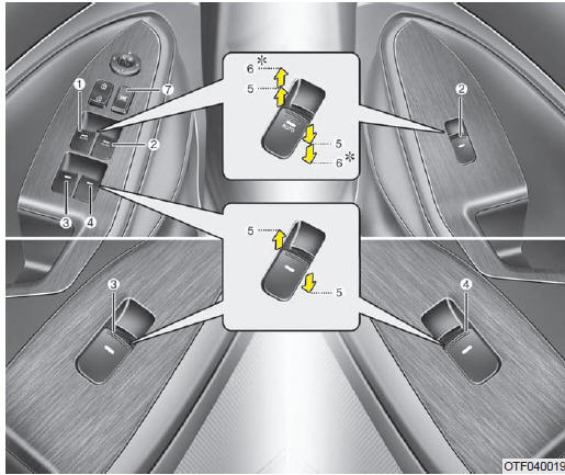 Les vitres à commande électrique ne s'actionnent que si la clé de contact se trouve en position ON. Chaque porte est munie d'un commutateur de commande de vitre. Pour le conducteur, on retrouve un commutateur de verrouillage qui empêche l'actionnement des vitres des passagers.