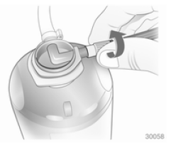 Opel Insignia: Kit de réparation des pneusDe petits dégâts sur la bande de roulement peuvent être réparés avec le kit de réparation de pneus.