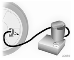 Si la pression de pneu prescrite n'est pas atteinte dans les 10 minutes, démonter le kit de réparation de pneus. Avancer ou reculer le véhicule d'un tour de roue.