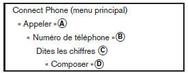 Consultez la section " Liste des commandes vocales " ci-après dans ce chapitre.