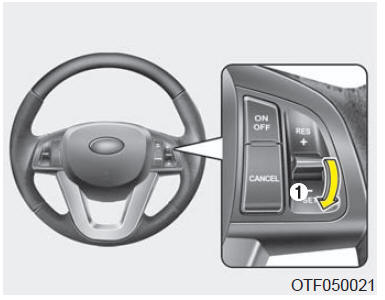Si vous désirez accélérer temporairement alors que le régulateur est en circuit, appuyez sur la pédale de l'accélérateur. La vitesse accrue n'affecte pas le réglage du régulateur.
