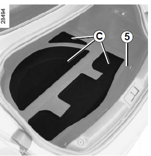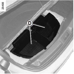 Rabattez les dossiers de la banquette, relevez l'avant du tapis E de coffre.