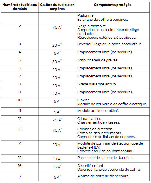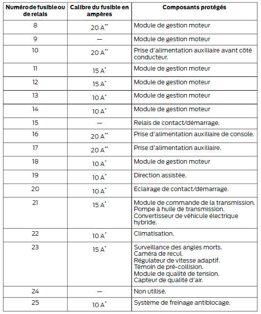 Ford Mondeo: Tableau de spécification des