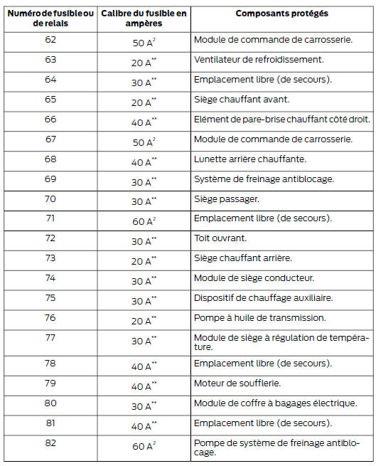 Des fusibles sont situés dans la partie inférieure de la boîte à fusibles. Pour atteindre la partie inférieure de la boîte à fusibles :