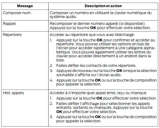 Pour vérifier la compatibilité de votre téléphone cellulaire, reportez-vous au manuel du téléphone ou consultez le site Web Ford régional.